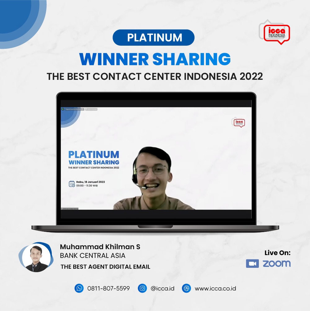 Sesi terakhir dilanjutkan oleh pemenang Platinum The Best Digital Email dari PT Bank Central Asia, yaitu Muhammad Khilman Syah. Pria kelahiran tahun 1999 ini bergabung di Halo BCA site Semarang sebagai Agent Whatsapp. “Merangkai kata menjadi infromasi yang tersampaikan dengan sangat indah dan berkesan bagi nasabah,” begitulah tujuan dari layanan Whatsapp di tempat Khilman bekerja. Dengan kesederhanaan yang ia miliki, Khilman dalam ajang TBCCI 2022 mengambil tema, “Plagiasi Bukan Akun Resmi,” pada video presentasinya.