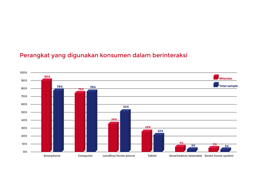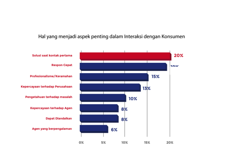 Sebanyak 20% konsumen menginginkan masalah atau pertanyaan mereka terjawab pada kontak pertama dengan layanan contact center. Selain itu, dari sebagian besar konsumen tersebut, 90% golongan milenial saat ini juga memilih berinteraksi dengan contact center menggunakan telepon genggam. Preferensi alat komunikasi konsumen tersebut menggambarkan karakter konsumen masa kini yang mengutamakan kepraktisan dan kecepatan. Menjadi sebuah hal yang penting bagi contact center untuk mempertimbangkan preferensi konsumen tersebut dalam memberikan pelayanan.