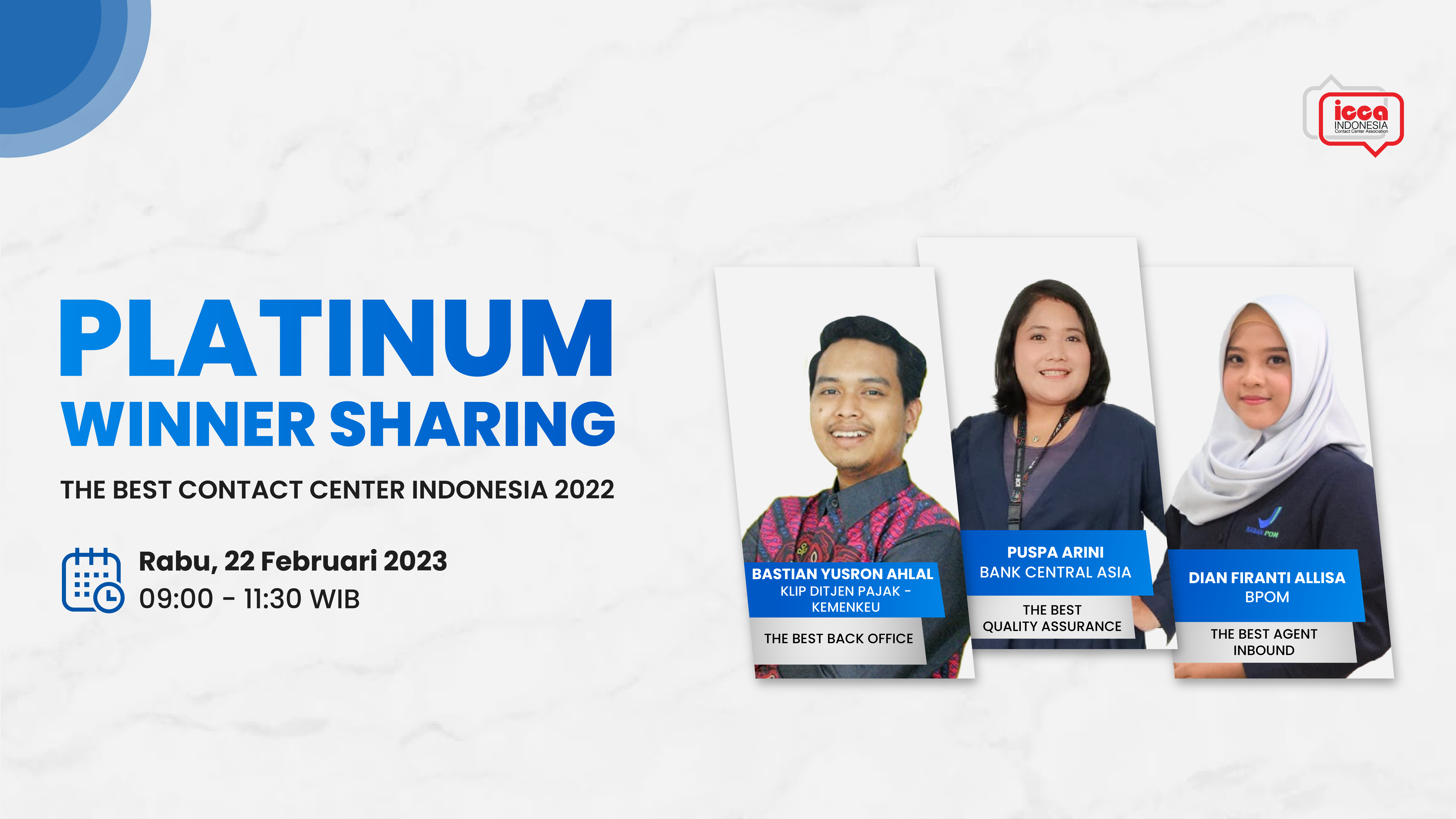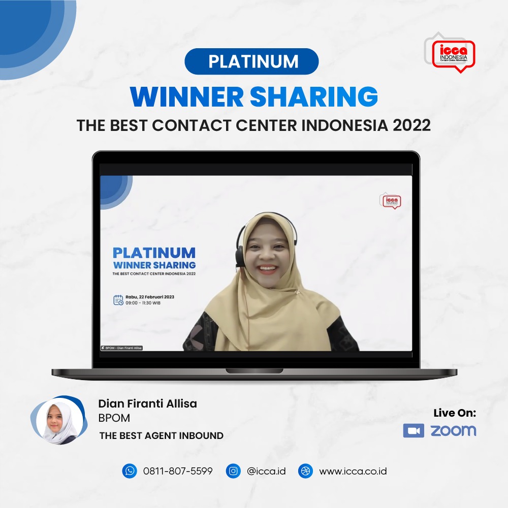 22 Februari 2023 – ICCA kembali menghadirkan tiga pemenang Platinum TBCCI 2022 pada acara Winner Sharing pagi ini. Sesi pertama diawali oleh pembicara dari Badan Pengawas Obat dan Makanan (BPOM), yaitu Dian Firanti Allisa. Dian berhasil memenangkan medali Platinum pada kategori Agent Inbound Lembaga Publik 2022. Pada TBCCI tahun lalu, Dian menyampaikan bahwa ia membuat video presentasi dengan bertemakan MOTO GP. Ia mengambil tema tersebut karena terinspirasi dari keindahan MOTO GP saat bertugas dalam kegiatan KIE (Komunikasi, Informasi dan Edukasi) di Mandalika.