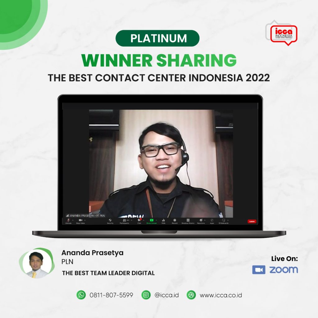 Pembicara untuk sesi selanjutnya dari PT PLN (Persero), yakni Ananda Prasetiya. Dalam TBCCI tahun lalu, Ananda berhasil meraih Platinum pada kategori The Best Team Leader Digital. Sebagai seorang leader yang memimpin banyak agent dalam satu tim, Ananda memiliki beberapa tugas utama, salah satunya menjadi Auto Correct. Tanpa henti ia melakukan pengawasan jika ada typo dalam penulisan yang dikirimkan agent kepada pelanggan. Hal ini dilakukan untuk mencegah kesalahan yang fatal atau berpotensi viral. Selanjutnya, yang kedua yakni MBPS. 1 Mbps ini sama dengan kecepatan transfer data 1000 Kbps, maka ia sebagai team leader digital harus gesit dan cepat dalam memastikan permasalahan yang ditangani agent sudah sesuai. Terakhir, yakni FEED yang berarti membuat laporan kinerja atau operasional setiap waktu mulai report harian, mingguan, hingga bulanan.