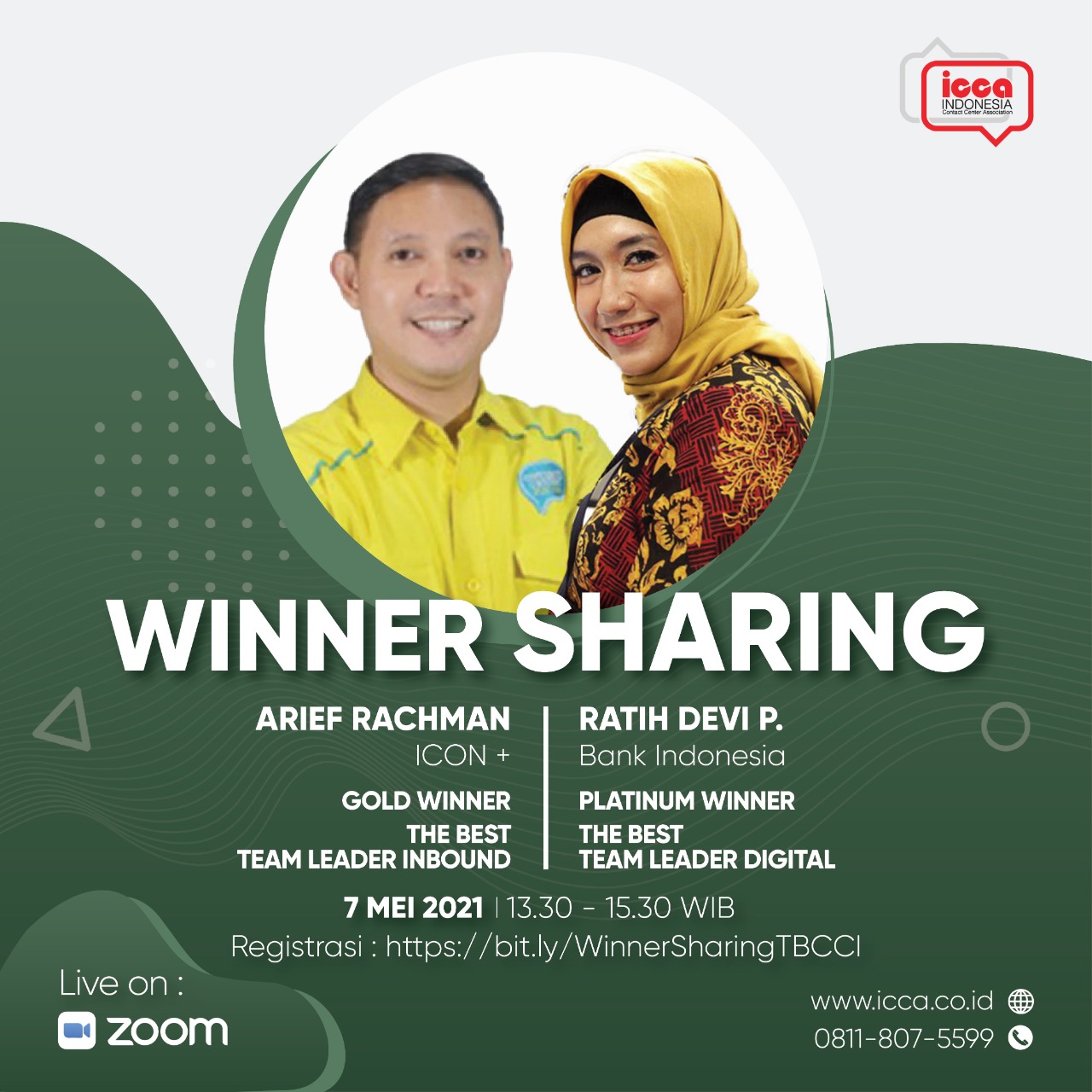 Hari Jumat, 07 Mei 2021. ICCA telah menyelenggarakan acara Winner Sharing ke-14 tahun 2021 yang menghadirkan dua pemenang kategori Team Leader The Best Contact Center Indonesia 2020.