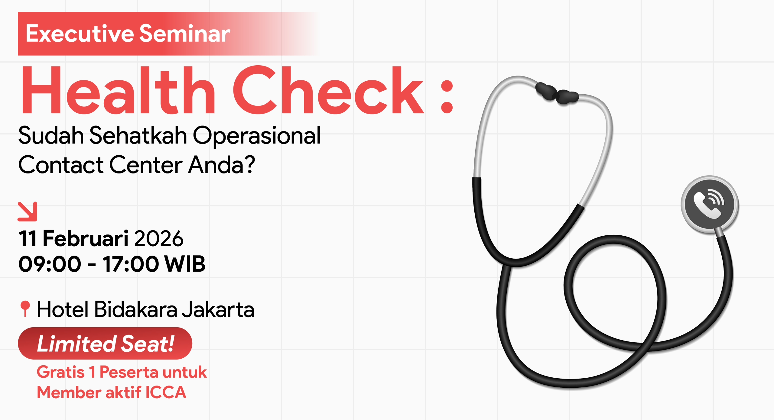 To attend Executive Seminar — “Health Check: Sudah Sehatkah Operasional Contact Center Anda?”, please complete the registration form. You will only be able to join the seminar once your registration has been reviewed and approved.