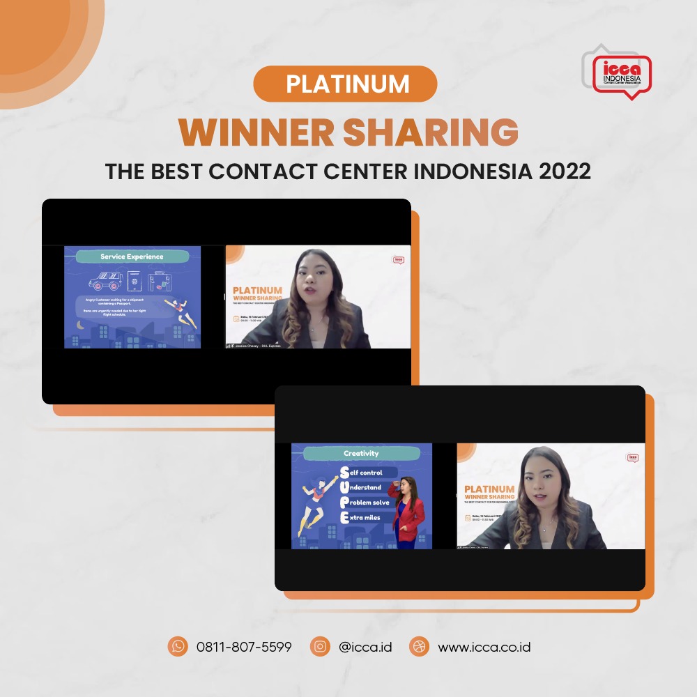 Sesi terakhir dilanjutkan oleh Jessica Chesey. Bergabung sebagai Customer Service Advisor di DHL sejak 2020 lalu, kini Jessica berhasil meraih Platinum pada ajang TBCCI 2022 pada kategori The Best Agent English. Pada pemaparannya, ia menyampaikan bahwa memberikan respon melalui telepon, email, ataupun chat dari pelanggan terkait pengiriman, serta menangani komplain merupakan makanan sehari-hari seorang customer service. Bukan itu saja, Jessica juga harus memberikan solusi terbaik dan akurat supaya pelanggan puas serta selalu setia menggunakan layanan dari DHL.