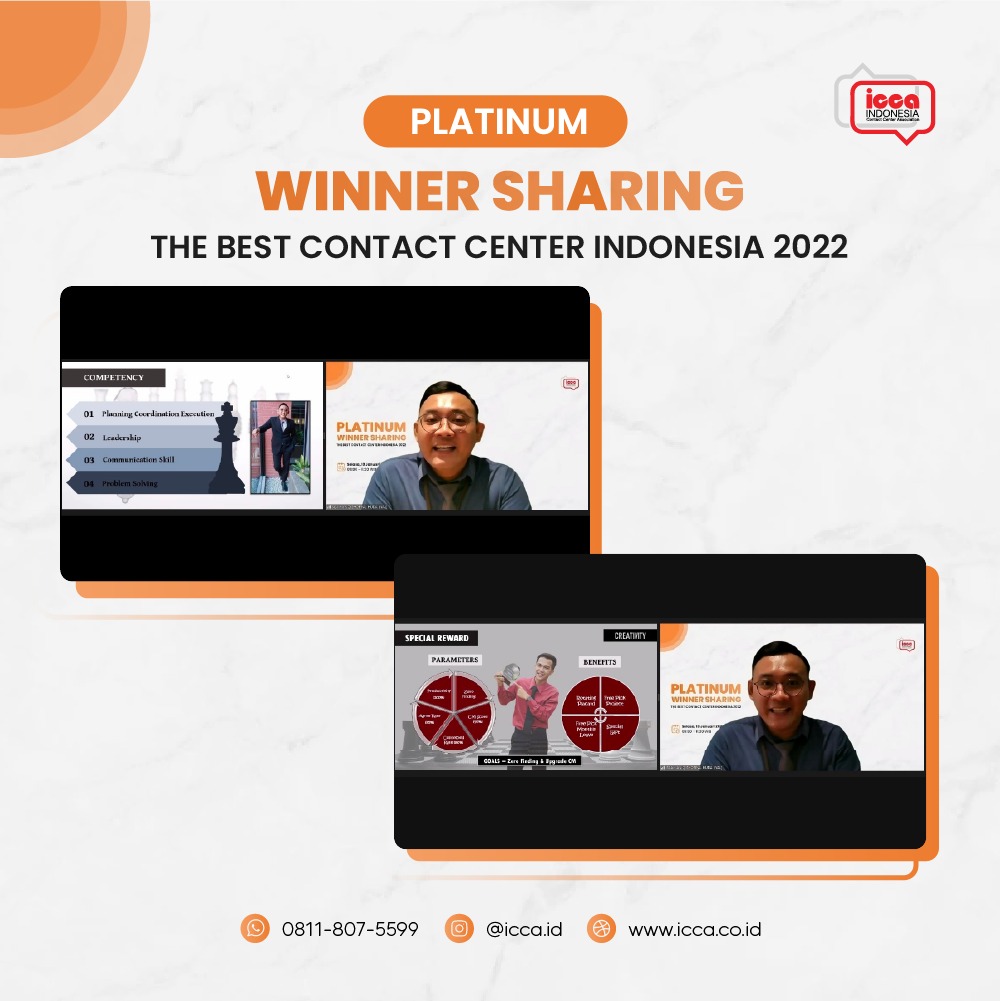 Terakhir, menutup pemaparan Winner Sharing kemarin, Iyal turut memberikan tips dan trik menjadi Champion dan meraih Platinum TBCCI. Pertama, Gave Maximum Effort. Lakukan dan berikanlah usaha yang terbaik. Apapun hasilnya, jangan pernah menyesal karena sudah memberikan yang terbaik. Lalu, tips kedua ialah Focus at Every Competition Stage. Fokuslah pada setiap tahapan kompetensi, mulai dari ujian tertulis, presentasi, dan sesi interview. Selanjutnya, yaitu Sharing With Experienced People, yang mana kita harus berbagi ilmu bersama orang-orang yang lebih berpengalaman sehingga dapat memperkaya ilmu pengetahuan mengenai contact center. Tips terakhir, yakni Self Confident & Positive Mindset. Ketika kita sudah bersikap percaya diri dan selalu berfikir positif, maka hasilnya pun akan lebih maksimal. (RRB)