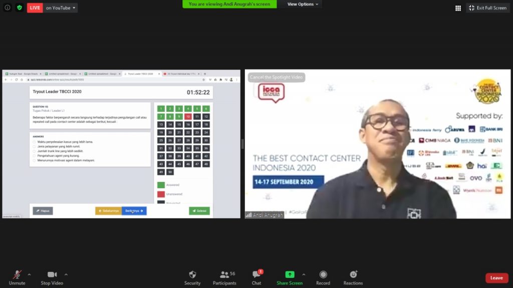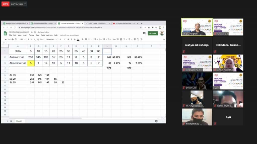 Tentu durasi tersebut berbeda dengan kategori Inbound dan Digital serta Customer Service dan Outbound yang diberikan waktu 60 menit. Kegiatan Tryout Individual Online ini dilaksanakan secara Virtual melalui Aplikasi Zoom Meeting. Peserta dapat menyelesaikan materi Tryout dalam sebuah aplikasi yang telah disediakan oleh panitia. Dengan waktu pengerjaan Tryout yang cukup, peserta menjawab pertanyaan yang terdiri dari 50 soal berdasarkan materi dari kategori yang mereka ikuti.