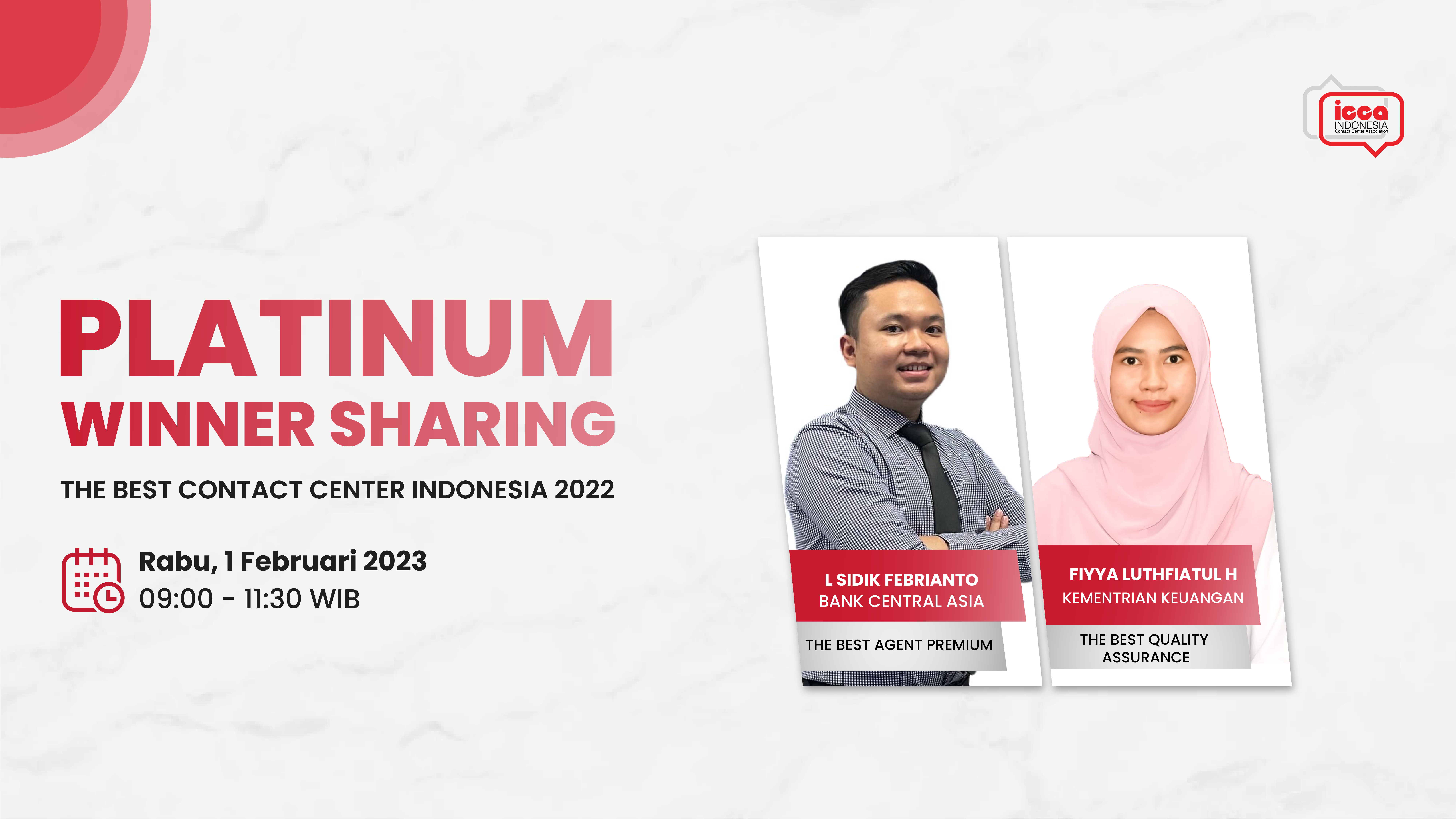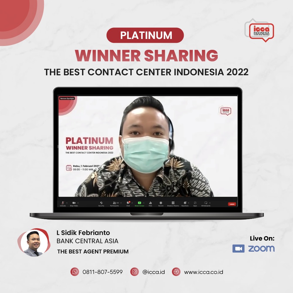 Beberapa formula atau kreativitas yang ia bagikan tersebut, di antaranya Be Like Albert Enstein, Formula X=Y, dan Be a Champion. Dengan menggunakan ketiga kreativitas tersebut, Sidik pun mendapatkan banyak manfaat, baik dari sisi nasabah maupun untuk dirinya sendiri. Manfaat yang didapatkan, seperti mendapatkan kepuasan dan loyalitas nasabah, serta meningkatkan nilai (value) dalam dirinya. Di akhir, Sidik juga berbagi terkait pengembangan diri yang ia lakukan di BCA, serta tips dan trick dalam mengikuti kompetisi The Best Contact Center Indonesia. “Bagi peserta winner sharing hari ini yang ingin mengikuti perlombaan di tahun 2023, semoga bisa dilancarkan dan mendapatkan penghargaan yang diinginkan,” tutupnya.
