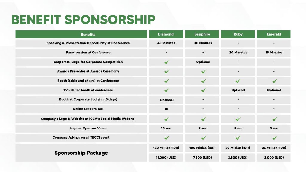 Badan usaha, badan publik, atau lembaga publik serta perorangan yang mempunyai perhatian pada pengembangan contact center di Indonesia dapat mendukung kegiatan ICCA dengan menjadi sponsor.