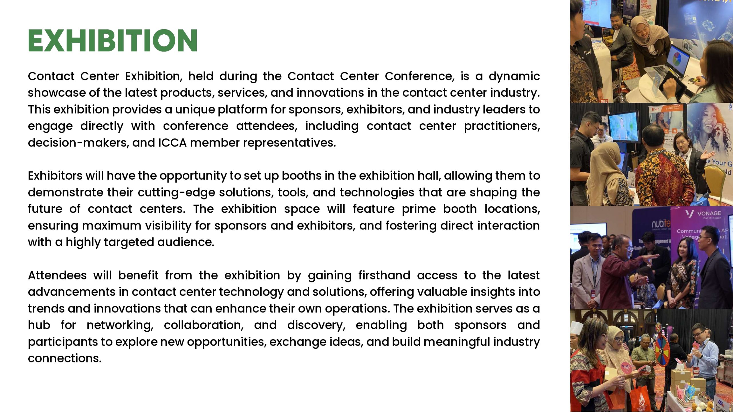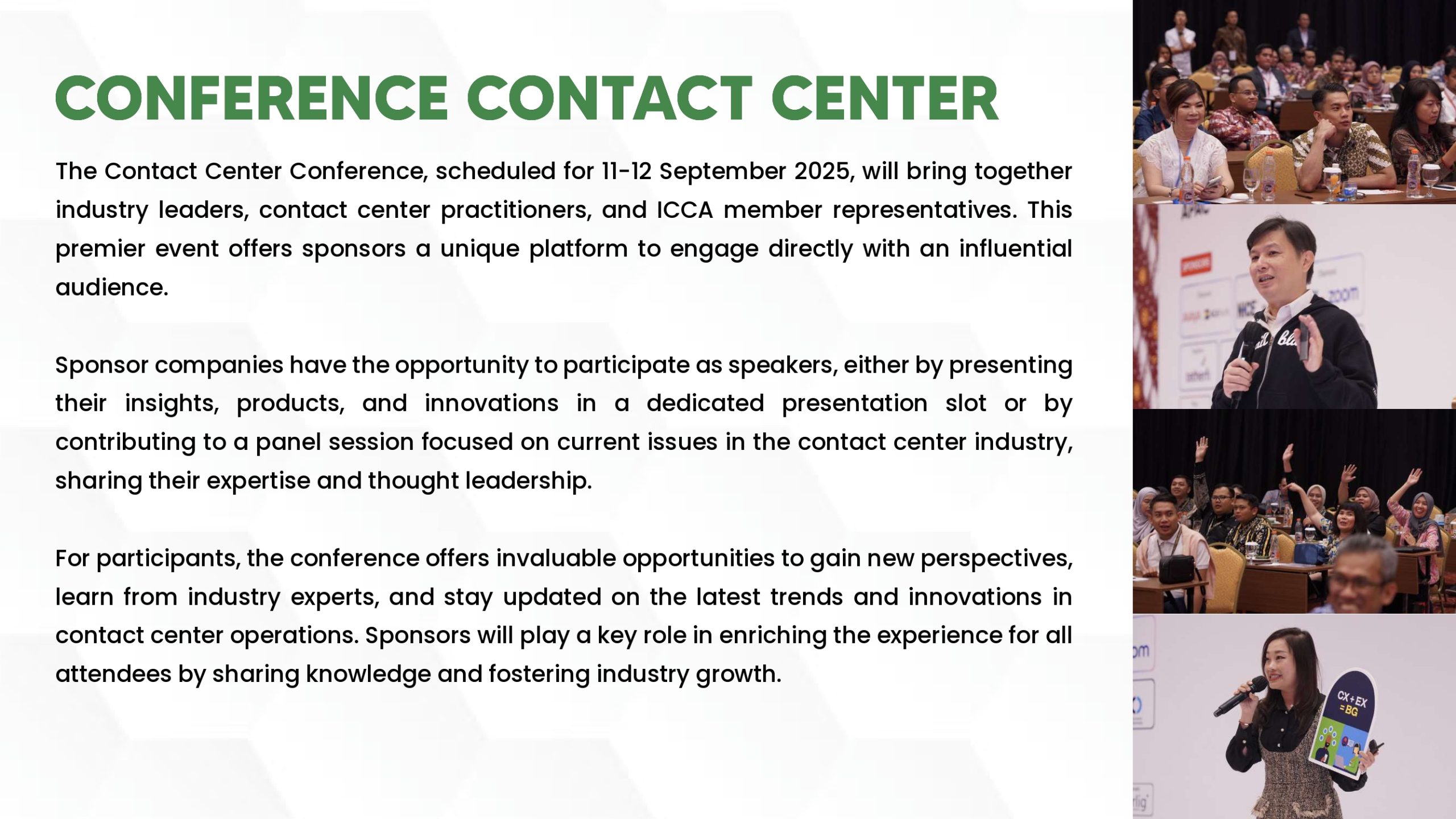 Salah satu kegiatan yang dilaksanakan sebagai rangkaian acara The Best Contact Center Indonesia 2025 adalah Conference dan Exhibition. Mengangkat topik-topik menarik seputar teknologi dan manajemen contact center.