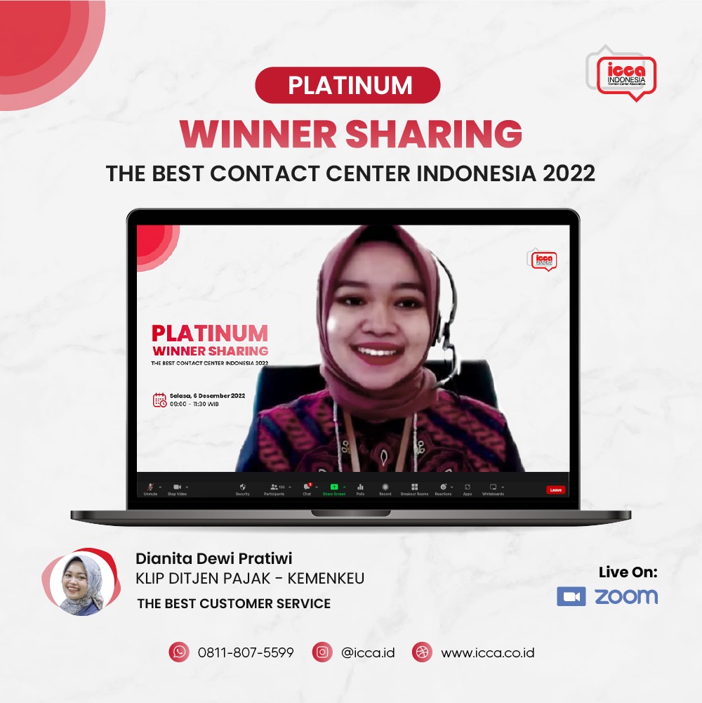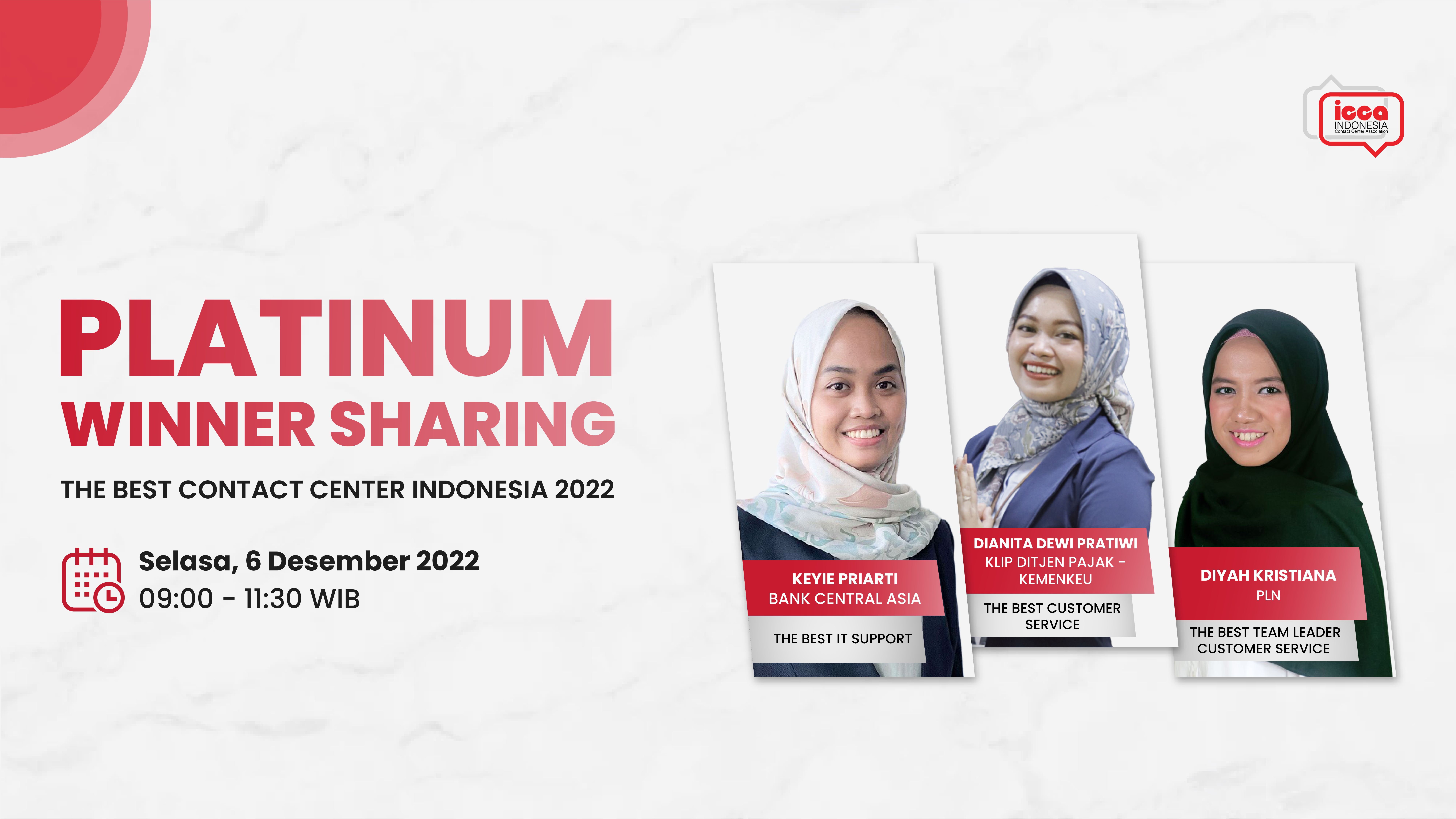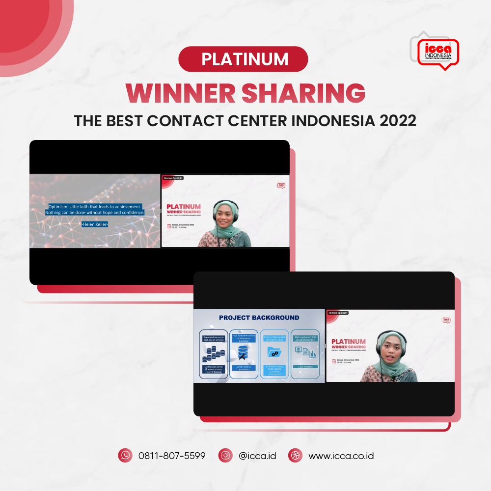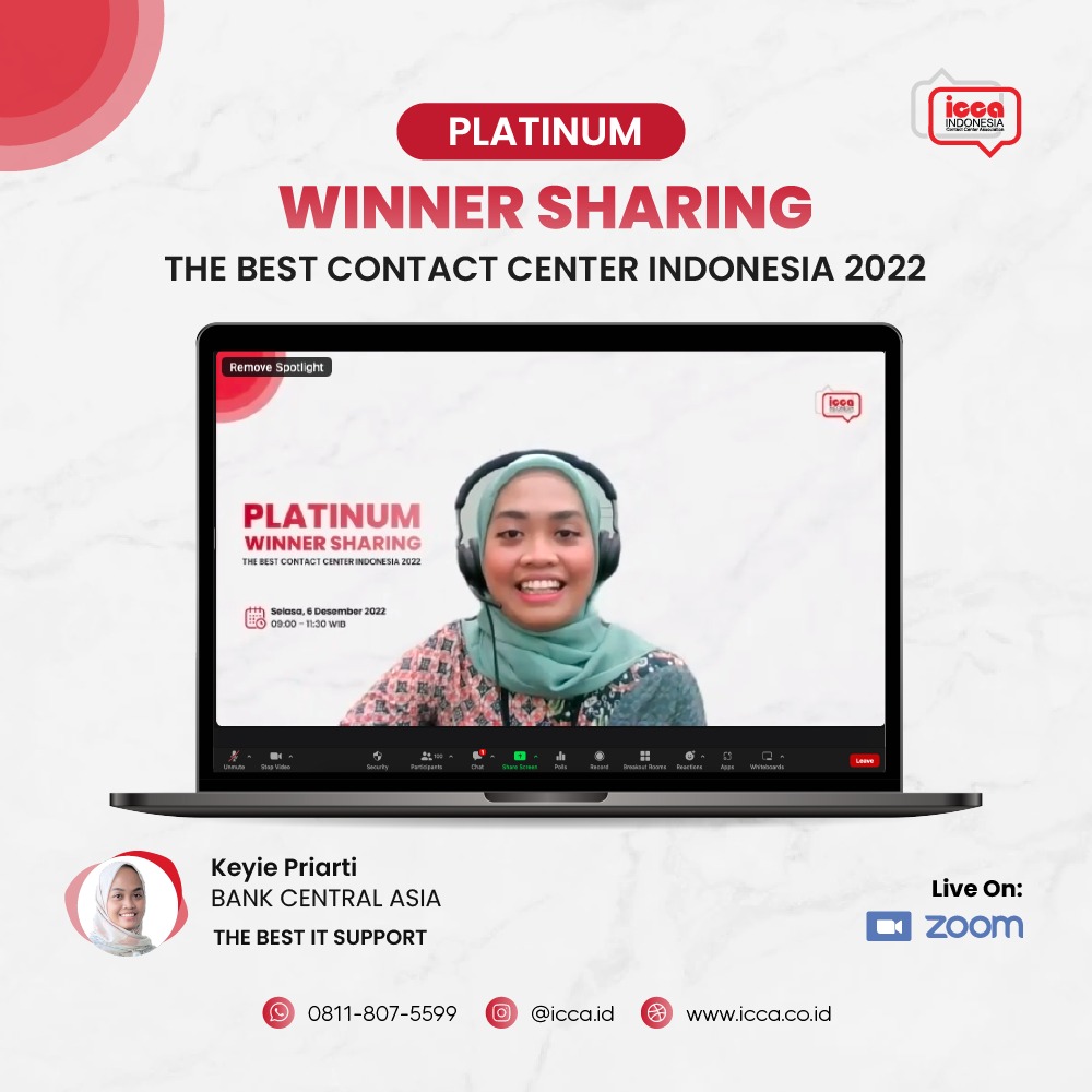 6 Desember 2022 – Winner Sharing bersama tiga pemenang Platinum TBCCI 2022 kembali diadakan sebagai pembuka bulan Desember tahun ini. Acara pagi ini diawali oleh pembicara pertama dari Bank Central Asia, yaitu Keyie Priarti. Ia merupakan pemenang Platinum The Best IT Support TBCCI 2022.